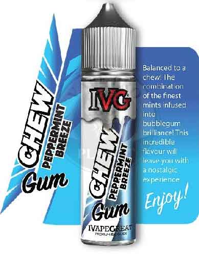 Chew Peppermint Breeze By IVG. Balanced to a chew! The combination of the finest mints infused into bubblegum brilliance! This incredible flavor will leave you with a nostalgic experience. Therefore, you must try. Besides, you should stock.