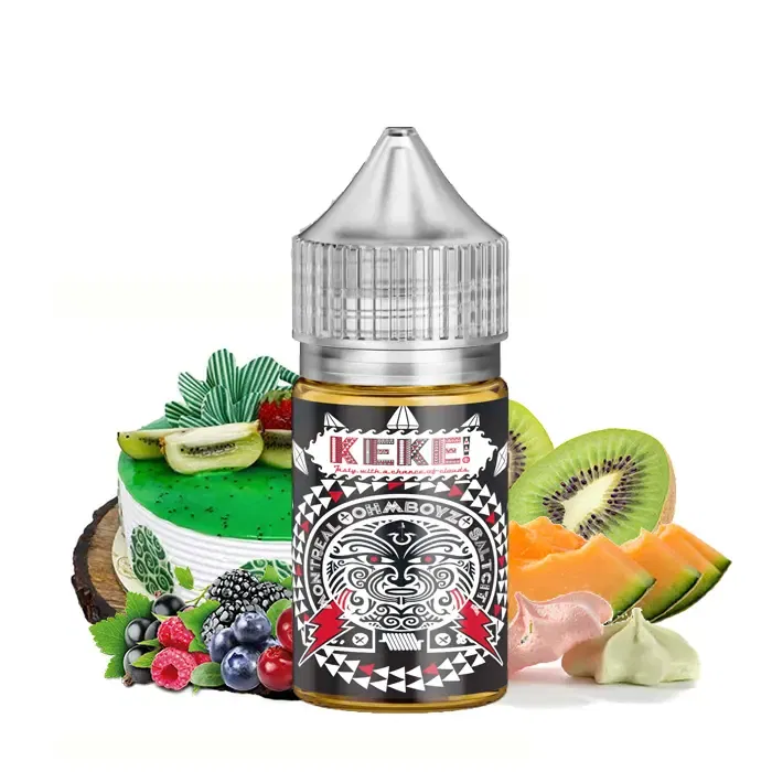 KEKE Saltnic – Ohmboyz Drip City, KeKe meaning cake in Maori a complex and unique desert delight from New Zealand called Pavlova, composed of a light cream base meringue cake topped with fresh forest fruits, cantaloupe, honeydew, and kiwi. Therefore, you must try it.