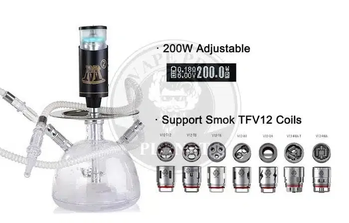 200W M2 E-Sheesha. The best with great taste, without charcoal, with interchangeable Coils from sub-ohm to RBA. Therefore, you must try. Besides, you should stock its coils.