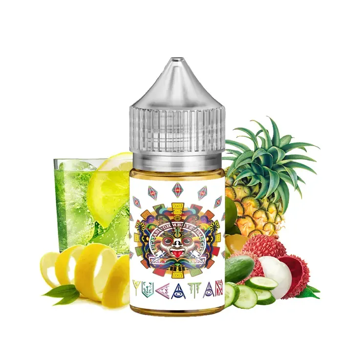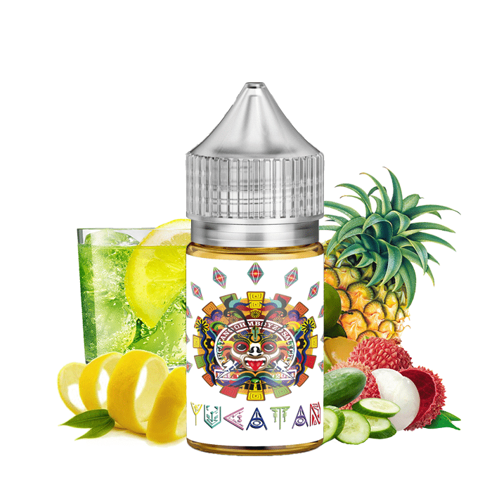 YUCATAN Saltnic – Ohmboyz Drip City, YUCATAN By Ohmboyz Drip City, ECLECTIC MAYAN TROPICAL STORM DISASTER LEMONADE. A MAYHEM OF SWEET AND SOUR JUNGLE FRUITS, CUCUMBER AND LIMONCELLO. Therefore, You Must Try it.
